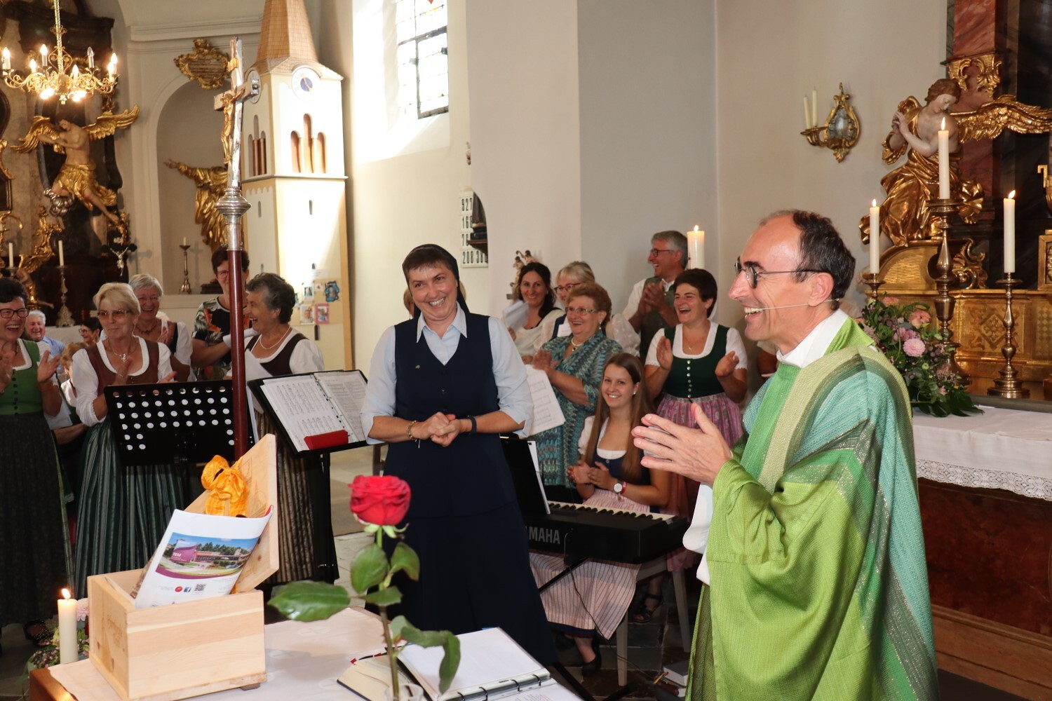 Sr. Maria leitet das kleine Ensemble, das den Pfarrseniorensonntag musikalisch umrahmt.