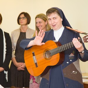 Sr. Maria singt zum Morgenlob ein Lied mit den Kindern