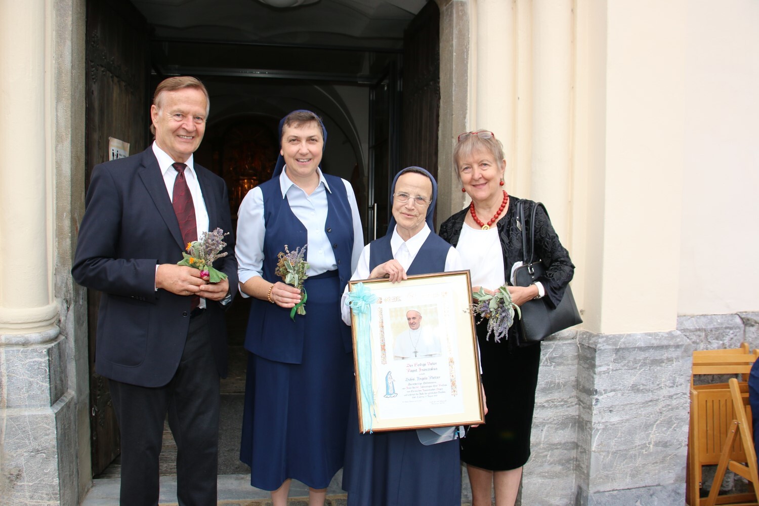 Jubilarin Sr. Angela mit Sr. Maria sowie Marianne Graf und ihrem Mann