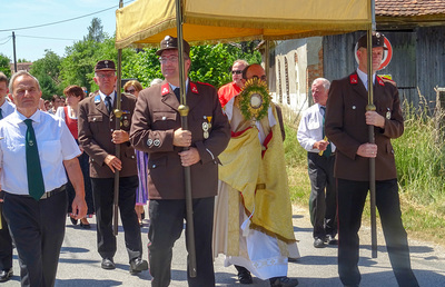 Heilige Messe mit anschließender Fronleichnamsprozession mit Pfarrer Johann Karner in Dobl.