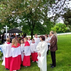Gemeinsam mit der Pfarre Tobelbad feierten wir das Fronleichnamsfest beim Dorfkreuz in Lieboch. Der auferstandene Herr Jesus, der in der Gestalt des Brotes gegenwärtig ist, steht im Mittelpunkt.