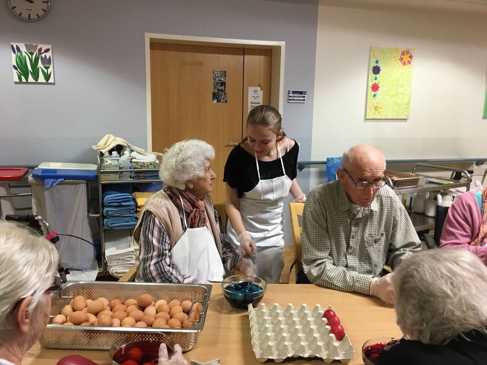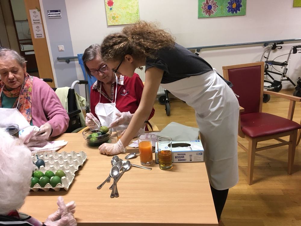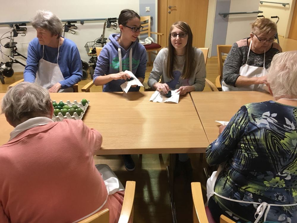 Die Gruppe Teufel hat im Waldhof mit den Senioren gebastelt und gebacken.