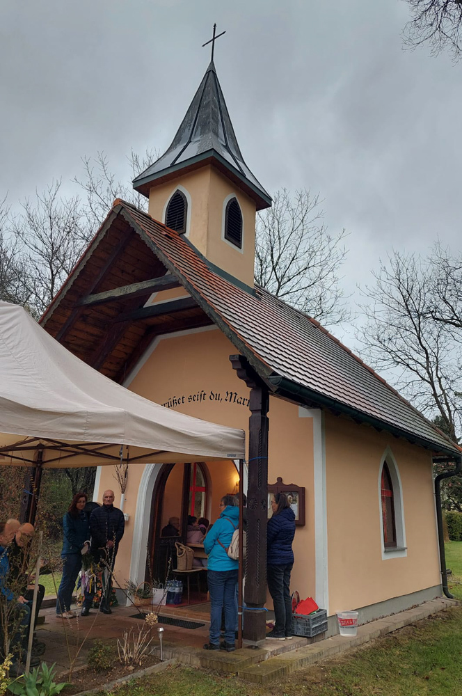 Am Palmsamstag, dem 9. April 2022, fand die erste Sternwallfahrt des Seelsorgeraumes Kaiserwald statt. Ziel war die Kaiserwaldkapelle in der Pfarre Premstätten. Trotz ziemlichen Regens haben sich mehr als 60 Wallfahrerinnen und Wallfahrer eingefunden und bei der Wort-Gottes-Feier ihre Palmbuschen segnen lassen. Bei einer Agape konnten sich die Teilnehmerinnen und Teilnehmer austauschen und haben dann noch gesegnetes Salz für die Osterspeisen mit nach Hause genommen.