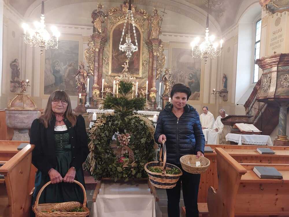 Die heilige Messe mit Pater Engelbert und Franz Ließ wurde in der von Helene Berger schön geschmückten Kirche gefeiert und von der Musikkapelle musikalisch umrahmt.