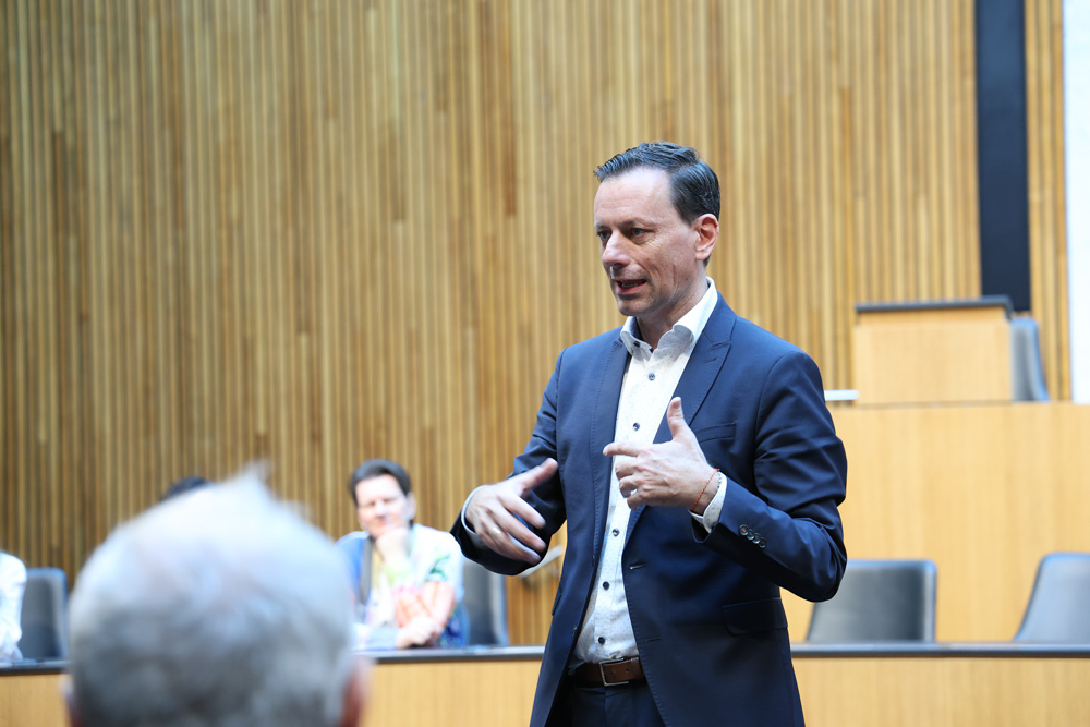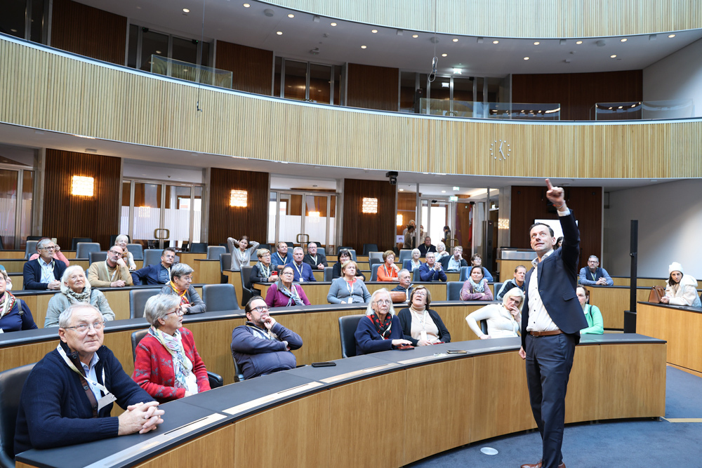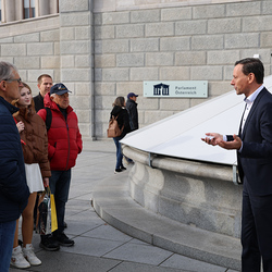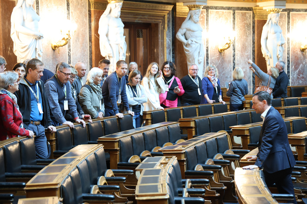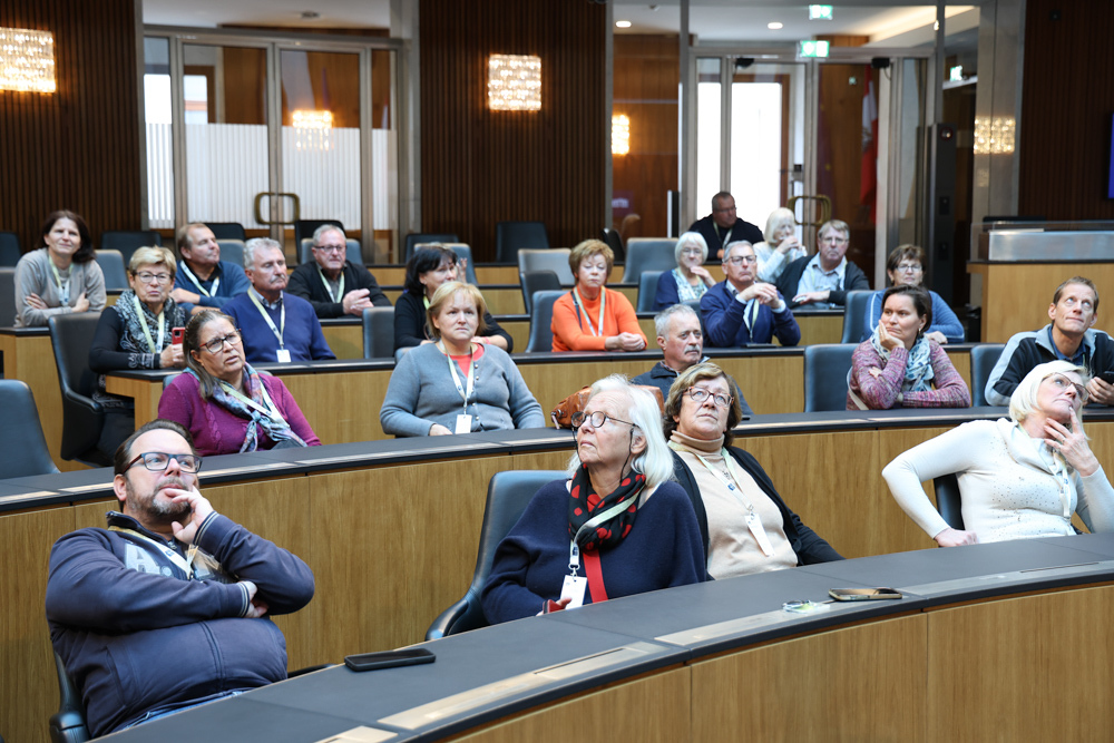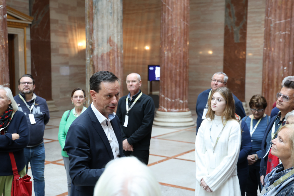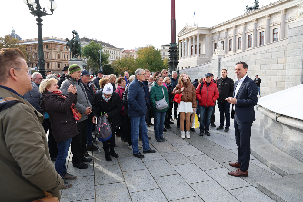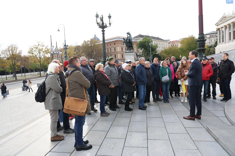 Ganz früh machte sich am 11. November 2023 ein voller 50er-Bus aus dem Seelsorgeraum auf den Weg nach Wien. Dort angekommen empfing uns der in unserem Seelsorgeraum wohnende Nationalratsabgeordnete Ernst Gödl. Er führte uns etwa zweieinhalb Stunden durch das im neuen Glanz erstrahlende, 140 Jahre alte österreichische Parlamentsgebäude und erklärte auch seine Aufgaben und Arbeitsweise als Nationalratsabgeordneter.